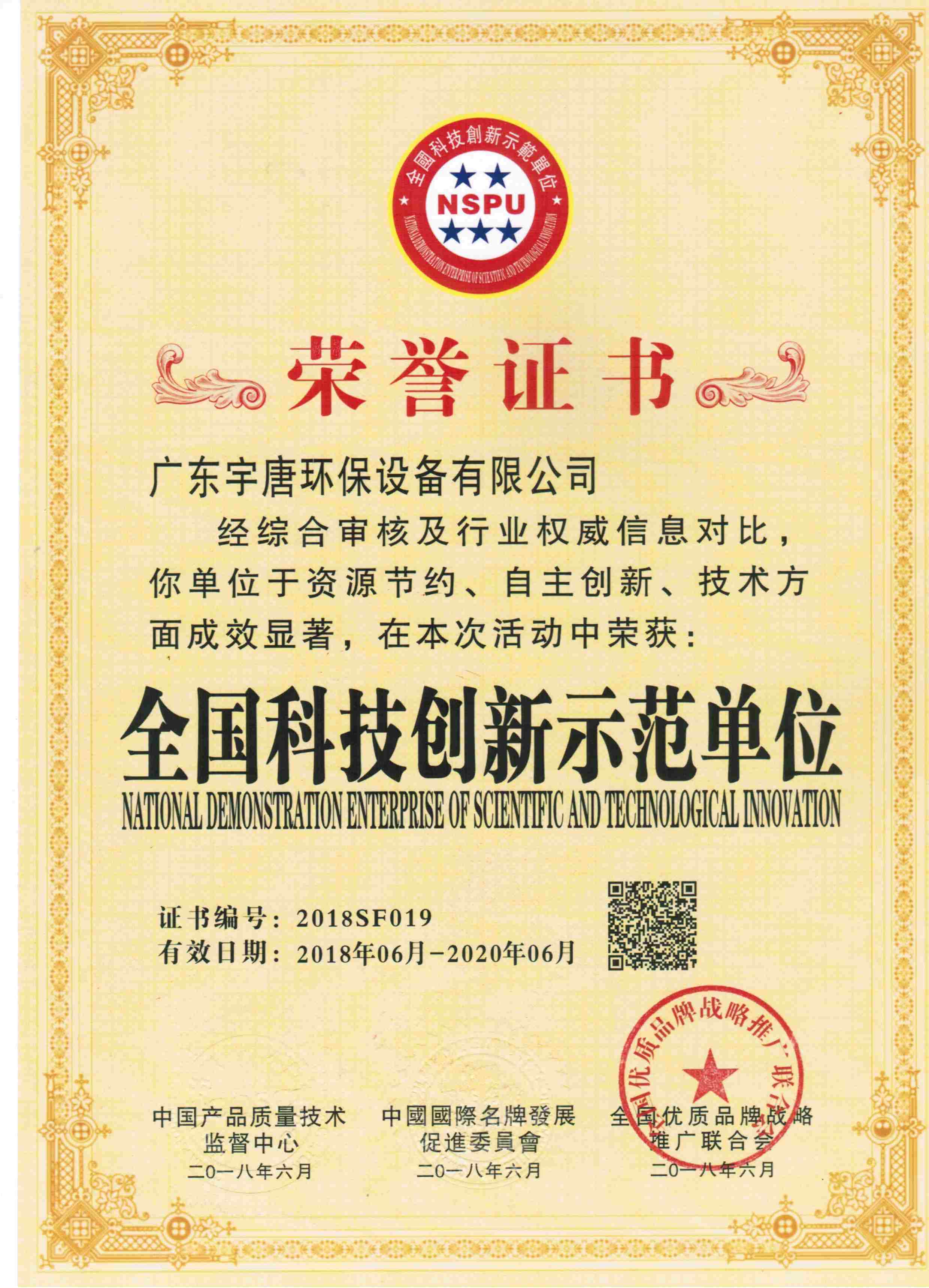 全國(guó)科技創(chuàng)新示范單位榮譽(yù)證書