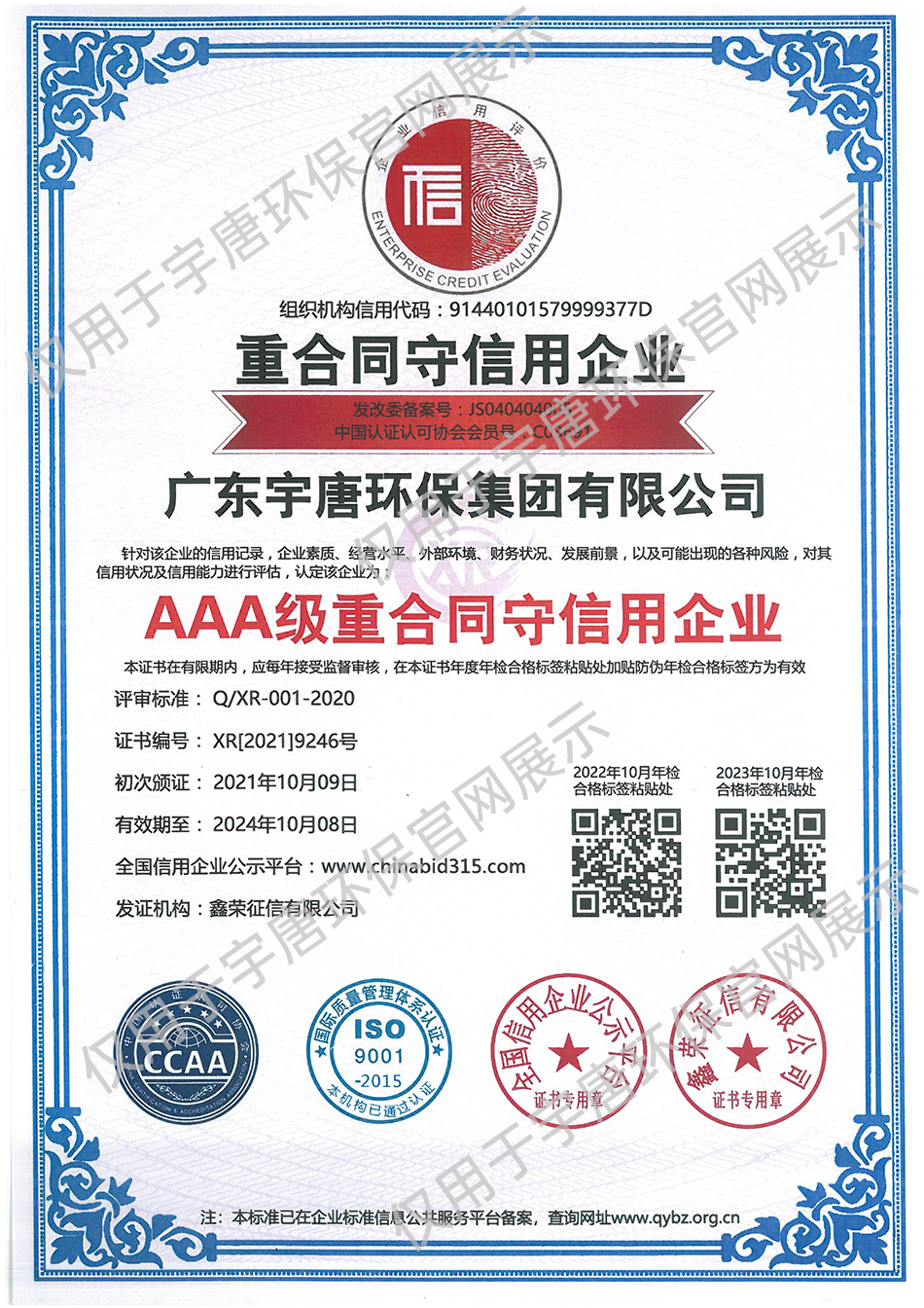 AAA級(jí)重合同守信用企業(yè)證書