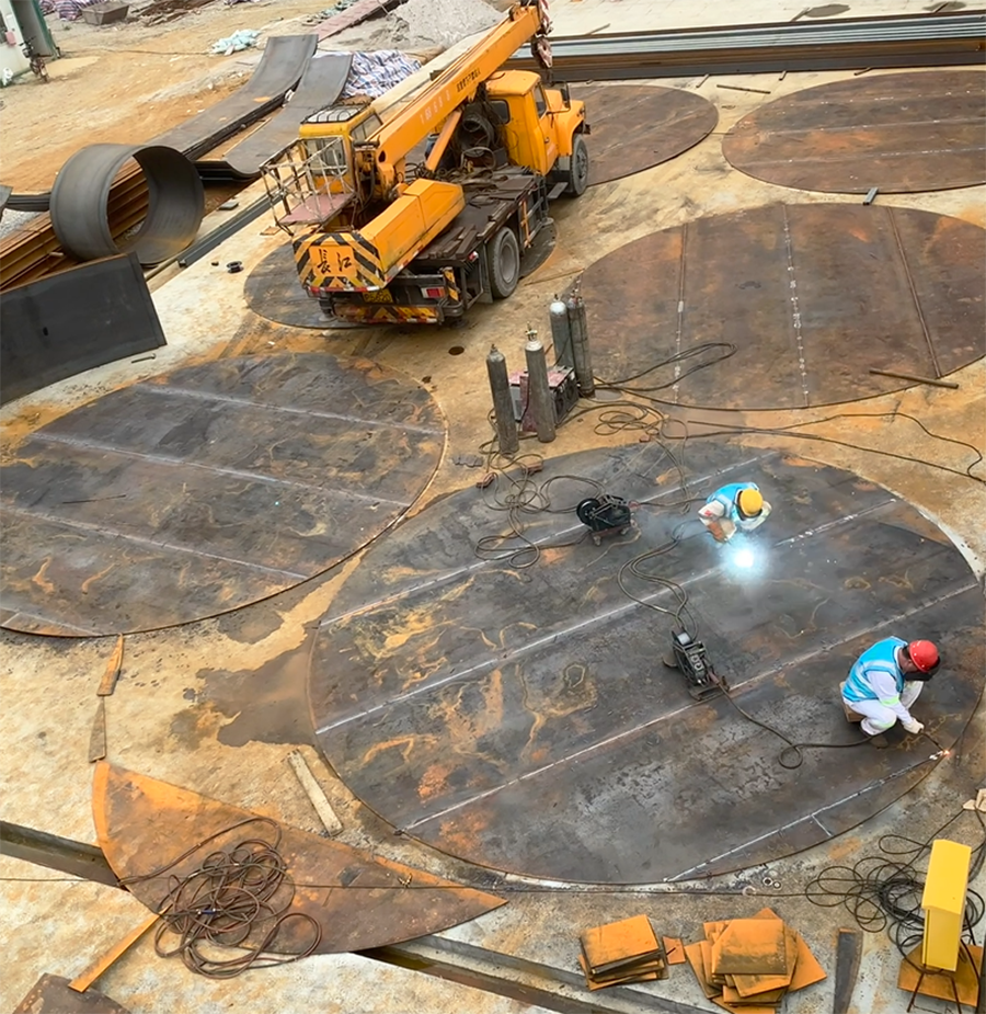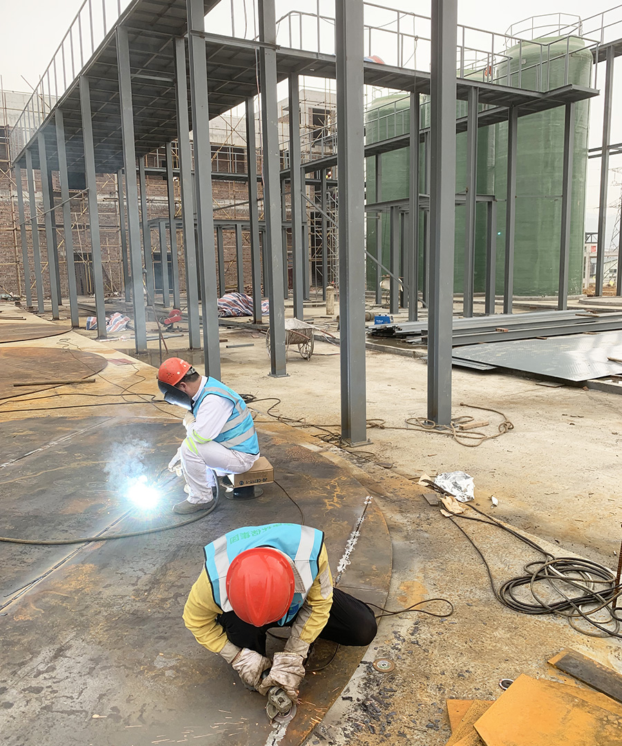 燒焊環(huán)節(jié)的工藝,無(wú)法在雨水天氣進(jìn)行,但是又不能耽誤工期,施工隊(duì)長(zhǎng)想出辦法,一邊用火槍烤干鋼材,一邊焊接進(jìn)行,同步進(jìn)行。